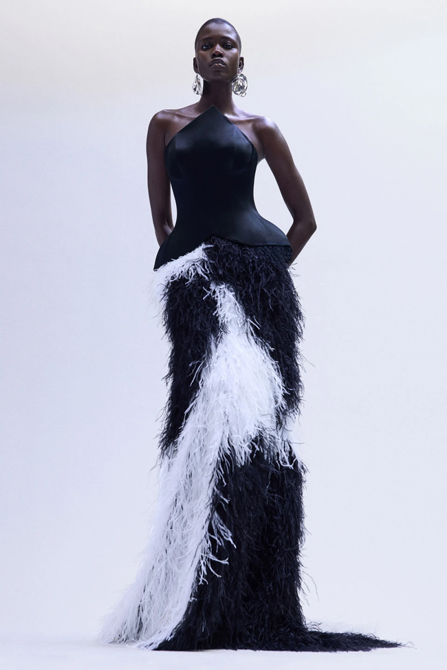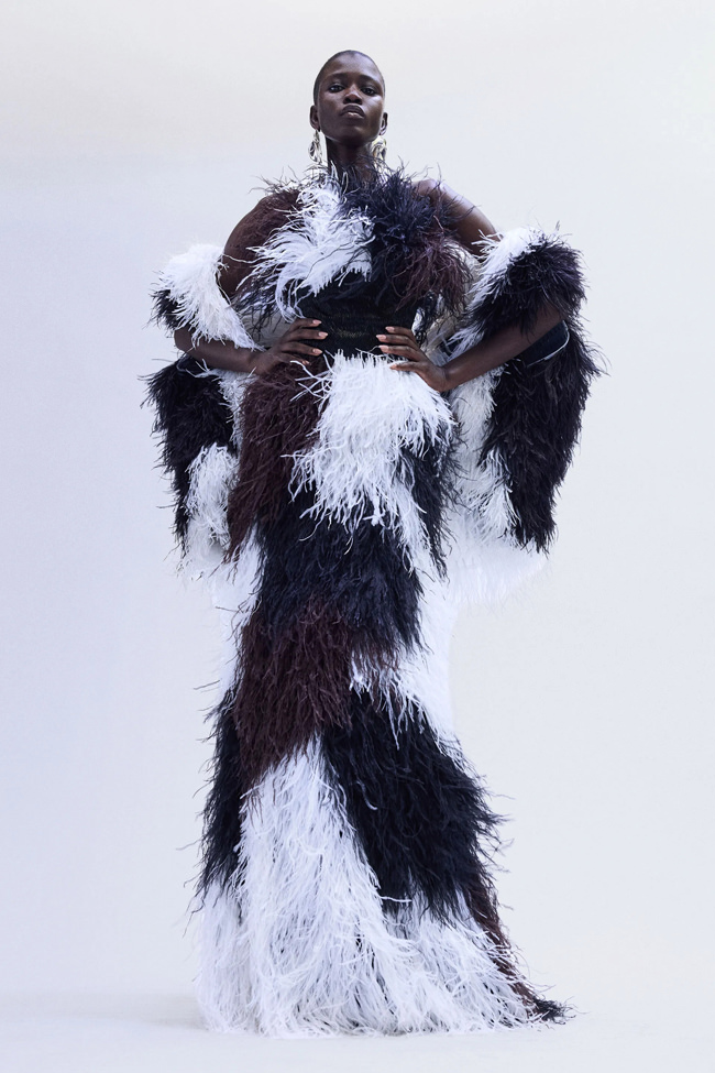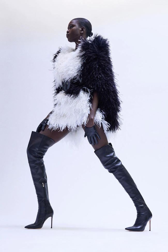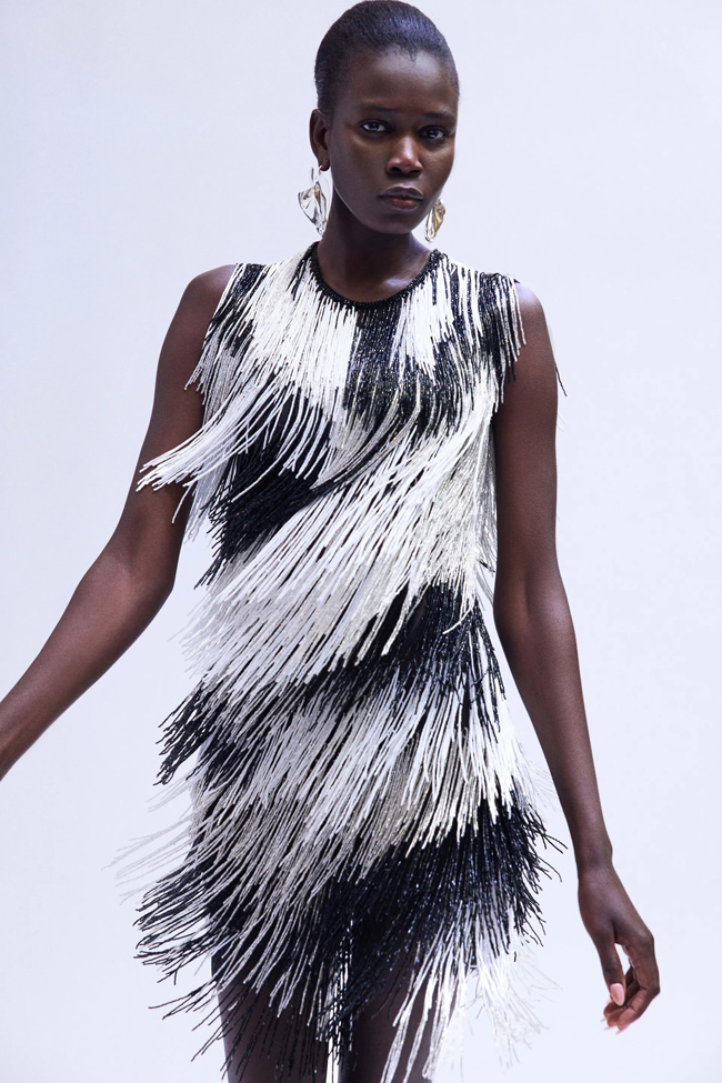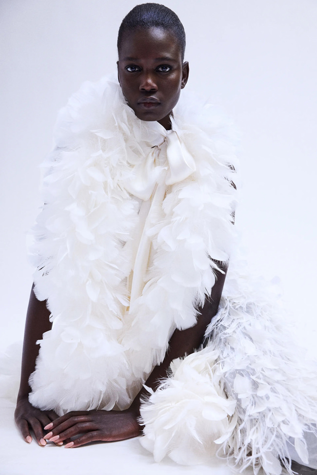In stark contrast to the white robes she dons to play Daisy in The Handmaid’s Tale sequel series The Testaments, when Glamour meets Lucy Halliday at London’s Raffles Hotel she is dressed in all black, her top and trousers peppered with sparkles.